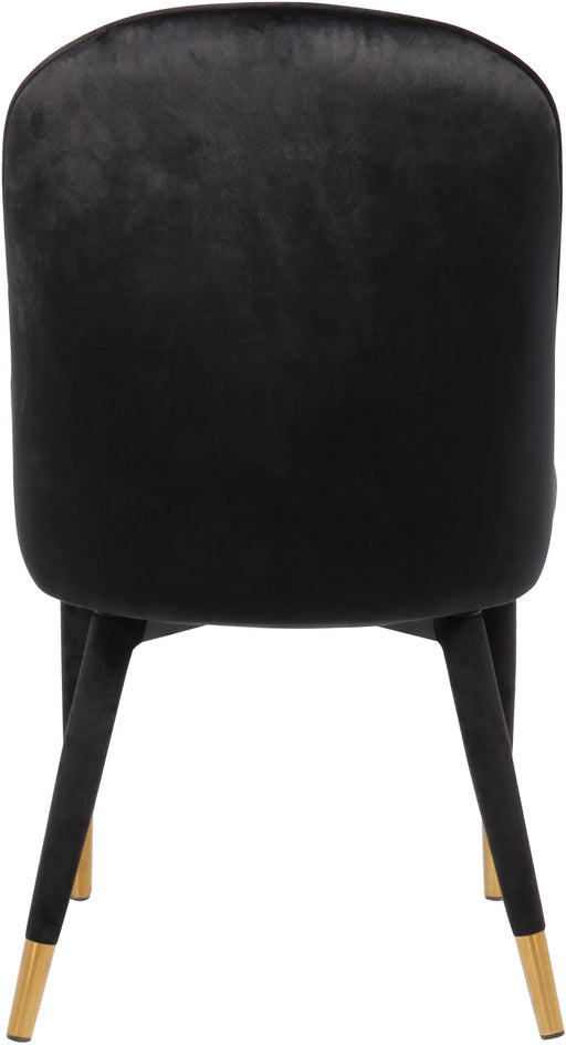 Belle Black Velvet Dining Chair - Soft Black Velvet - Curved Channel Tufted Back - Upholstered Leg with Gold Tip - Contemporary Design