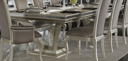 Hollywood Swank Collection by Aico Furniture Pearl Caviar Finish Large rectangular dining table Solid hardwood construction Double pedestal base S...
