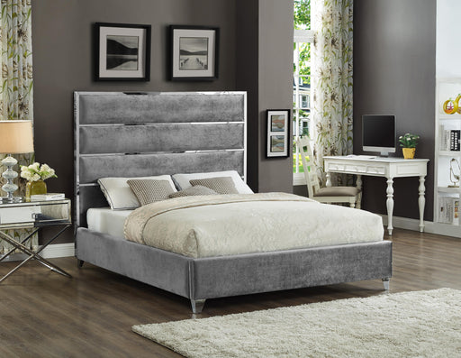 You'll fall fast and hard for the contemporary beauty of this Zuma Grey Velvet Queen Bed. The sleek velvet upholstery is not just supple and smooth...