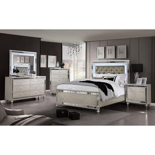 Glamor and shine have never looked as good as it does with this bedroom set from the Eliora Collection. Everything about this set sparkles. The sil...