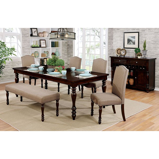 Claudia Collection by Acme Furniture Beige Linen and Salvage Brown finish Rectangular Cushioned seat Tapered legs