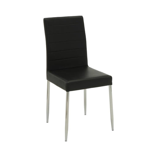 Add bold sophistication to your dining area with this contemporary side chair in black leatherette. Designed with clean lines and a sculptural bras...