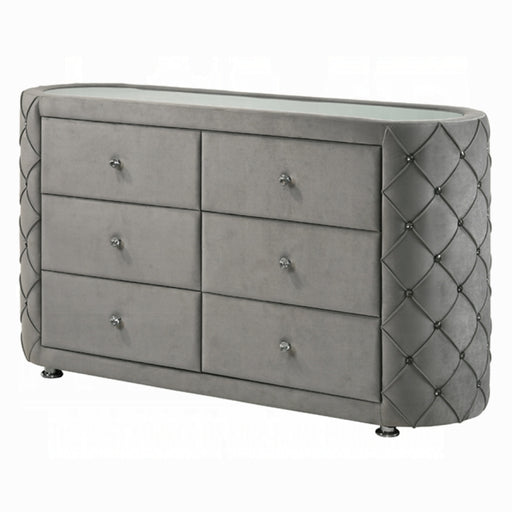 ACME Naima Dresser, Gray, 63" x 17" x 39"H, 137lbs. Features: - 9 Drw (Jewelry Drawer) - Casegood Drawer: GLIDE Center Metal, Dovetail English Fron...