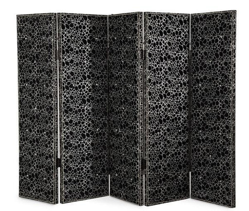 Hollywood Swank Collection by Aico Furniture Five panels Black Background Silvery designs and trimming around the edges Can be used on living room...