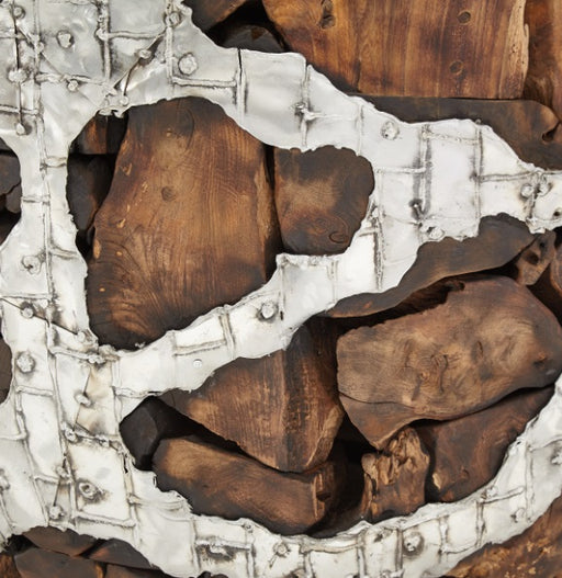 AICO Furniture Discoveries Wood Crafted Round Cocktail Table with Silver Accents