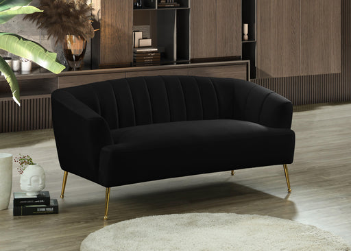 Gardenia Black Velvet Loveseat - Soft Black Velvet - Gold and Chrome Legs Included - Deep Channel Tufting - Contemporary Design