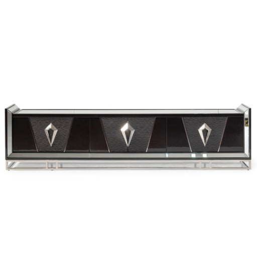 - Topped with beveled glass