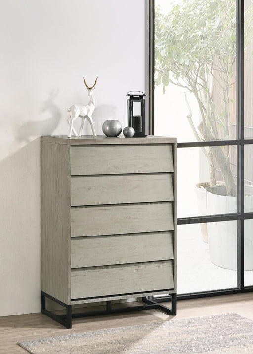 Create a distinctly contemporary vibe in your bedroom sanctuary with this antique coffee Reed chest from the Reed Wood collection. This handsome ch...