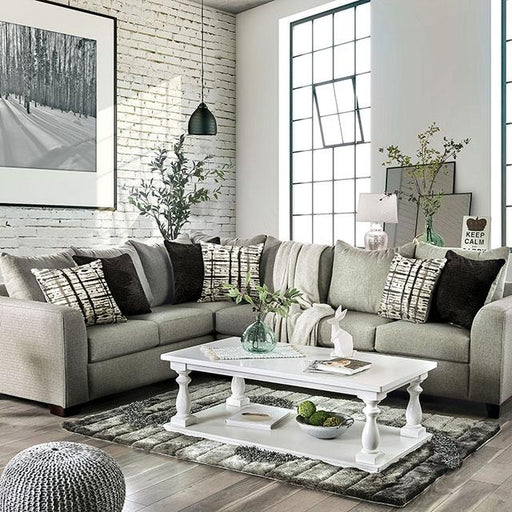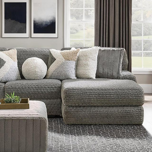 Kaylee Gray Large L-Shaped Sectional, 148 1/4"L X 68"W X 35 1/2"H, 262lbs. Features: U-Shaped Design Track Arms T-Cushion, Modular Design, Fitted B...