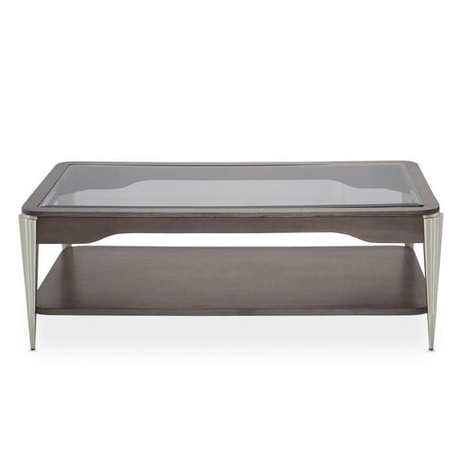 Roxbury Park Collection by Aico Furniture Slate finish Wood frame and tabletop is made with Figured Ash Veneer and a Slate Finish Apron is wrapp...
