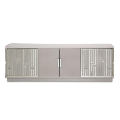 Roxbury Park Collection by Aico Furniture Slate finish Case front is wrapped in frost gray faux shagreen Case sides feature wood panels with Fig...